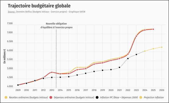 Cette évolution traduit un accroissement rapide des charges qui pèsent sur les communes wallonnes, et les contraint par conséquent à faire évoluer leurs recettes au même rythme pour maintenir un équilibre budgétaire viable.